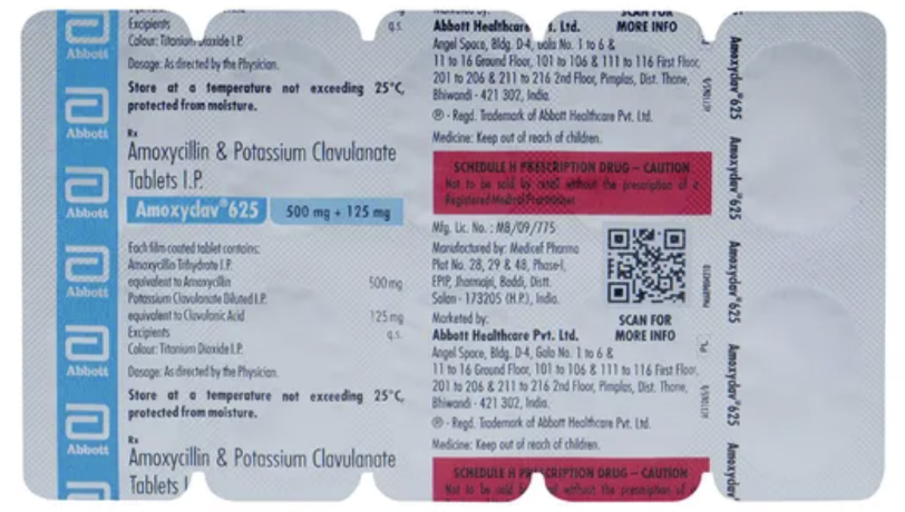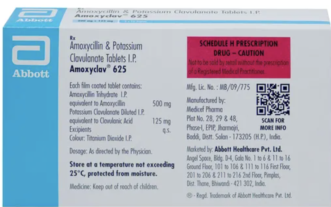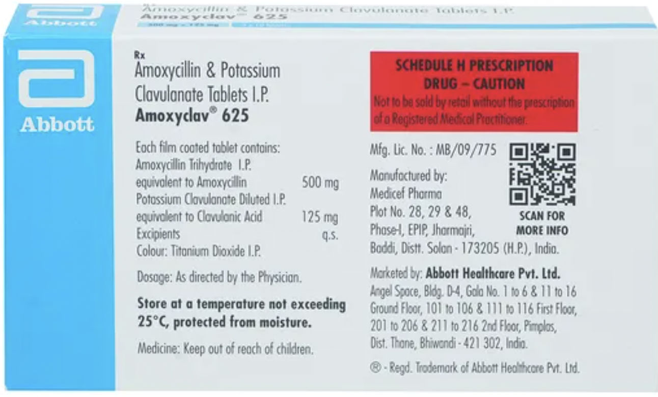 Composition AMOXYCILLIN-500MG + CLAVULANIC ACID-125MG Manufacturer/Marketer GlaxoSmithKline Pharmaceuticals Ltd Consume Type ORAL Return Policy Not Returnable Expires on or after 23-11-2026 NPPA Regulated